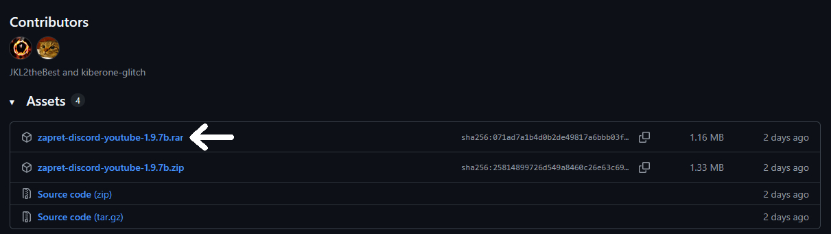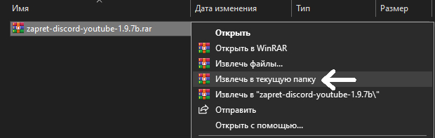 2. Cкачайте обход блокировки, нажав на zapret-discord-youtube-1.9.7b.rar