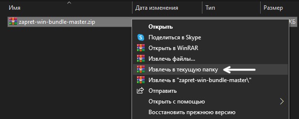 3. Распакуйте архив нажав на “Извлечь в текущую папку”, также может быть надпись “Извлечь все”