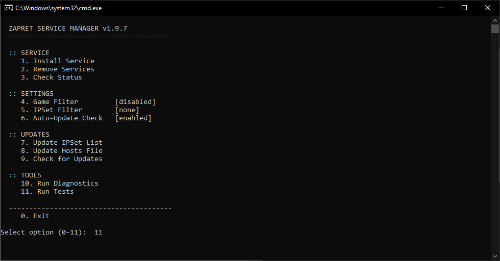 2. В открывшимся окне напишите 11, после чего у вас откроется окно терминала, в котором нужно написать 1, следом еще раз 1
