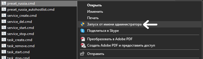 5. На файл “preset_russia.cmd” нажать правой кнопкой мыши, затем выбрать “Запуск от имени администратора”