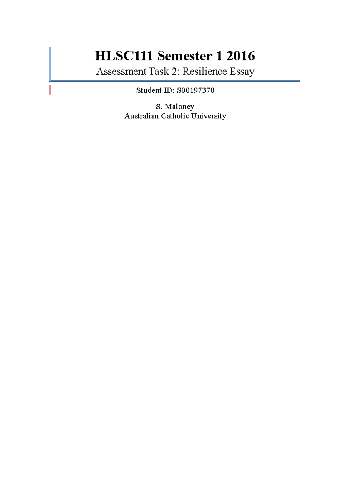 Individual Written Assignment A Study On Resilience . . .