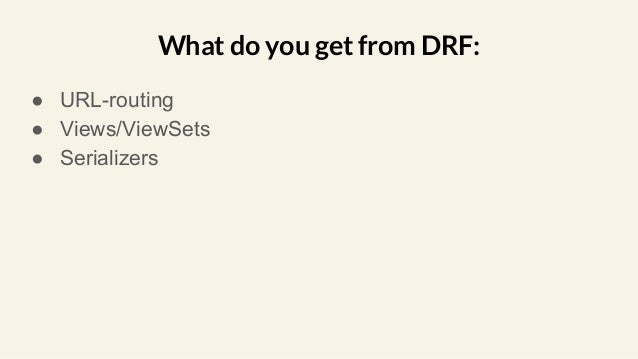 Tutorial 6: ViewSets & Routers . REST framework includes an abstraction for dealing with ViewSets, that allows the developer to concentrate on modeling the state and interactions of the API, and leave the URL construction to be handled automatically, based on common conventions . . ViewSet classes are almost the same thing as View classes, except that they provide operations such as retrieve, or . . .