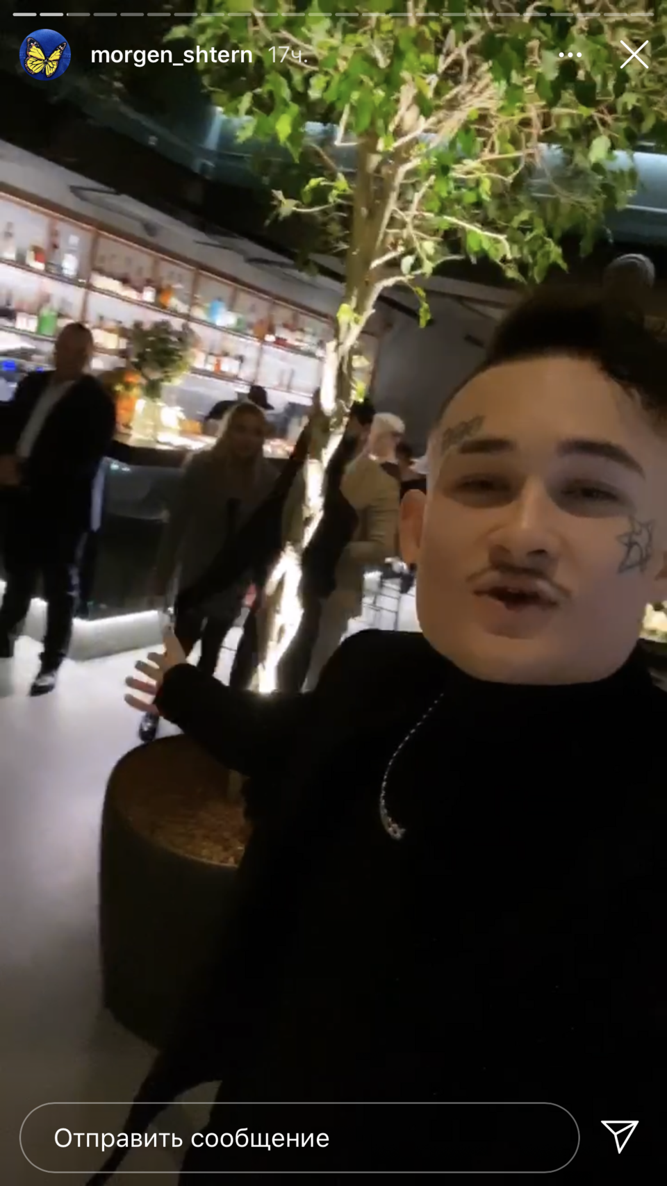 Ресторан Моргенштерна на Большой Дмитровке . Kaif Provenance Алишер Моргенштерн открыл вместе с блогером и владельцем техцентра BMW Янисом Греком . Внутри — настоящие деревья и свисающие живые растения, стеклянная крыша, сцена с большим проектором, фонтан .
