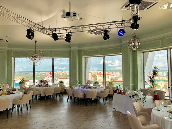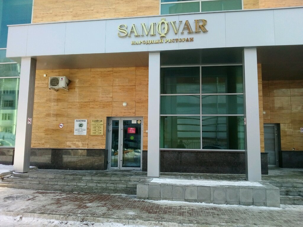 «Самовар» - первый в городе панорамный ресторан с изысканной кухней . Живое исполнение музыкантов и вокалистов . Вместимость: зал на 500 человек .Безналичный расчет . Wi-Fi зона . Смешанная кухня .