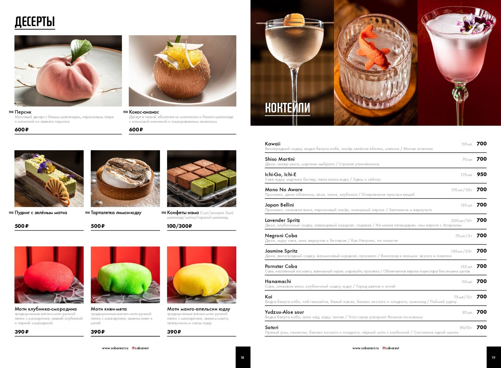 Ресторан коба меню