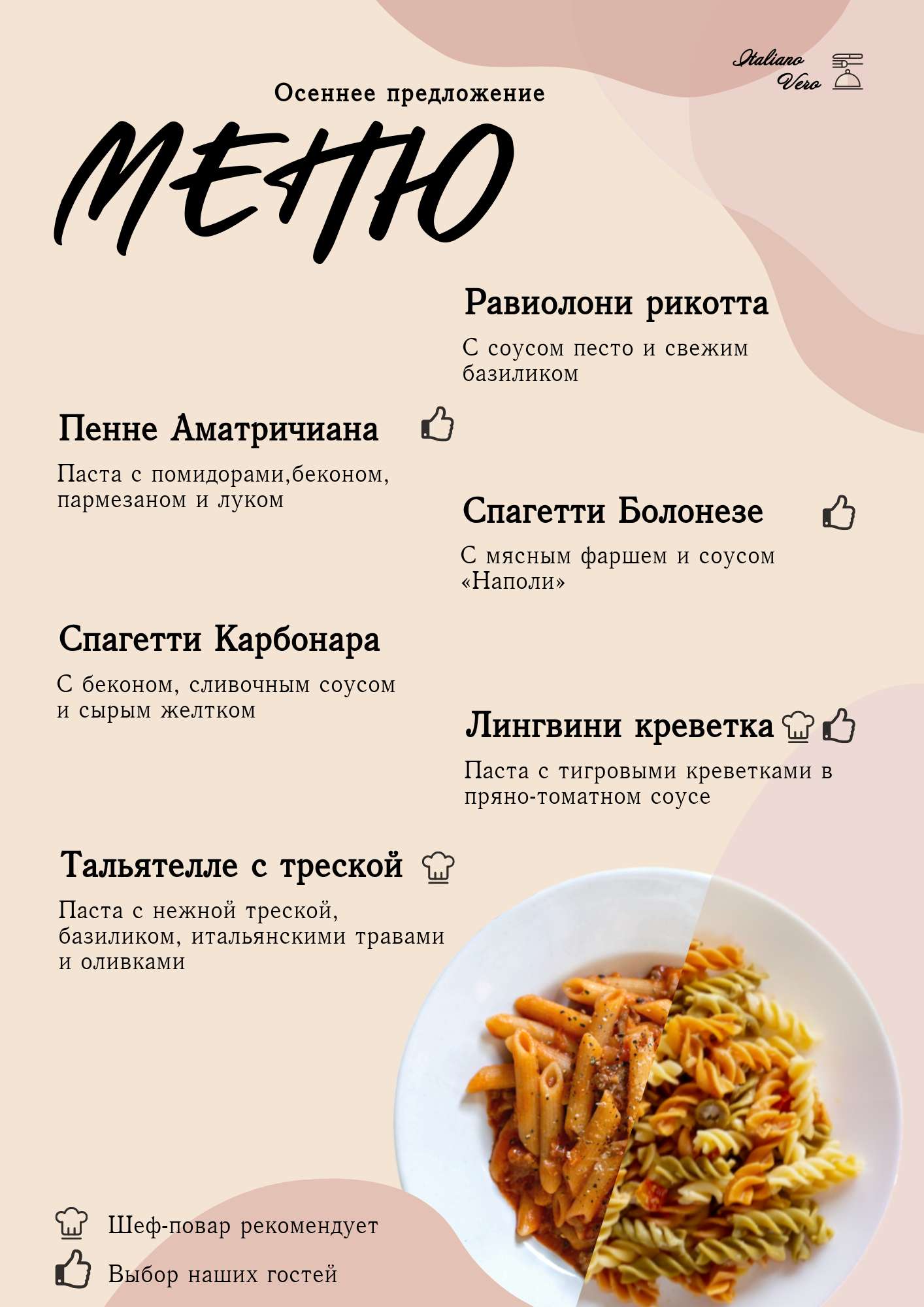 Ресторан макароны меню