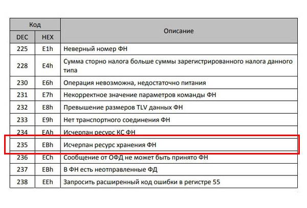 Ресурс хранения фд исчерпан что это