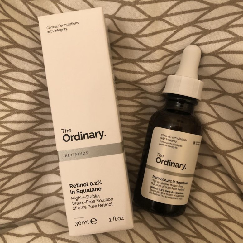 Ретинол 0,2 % в сквалане The Ordinary — 30 мл 750 ₽ Сыворотка для лица на масляной основе (сквалан) с 0,2 % чистого ретинола . В линейке The ordinary это сыворотка с минимальным количеством ретинола, поэтому новичкам рекомендуется начинать лечение именно с неё . Без воды Без спирта Без силиконов Без орехов Веганский продукт Без глютена Без сои