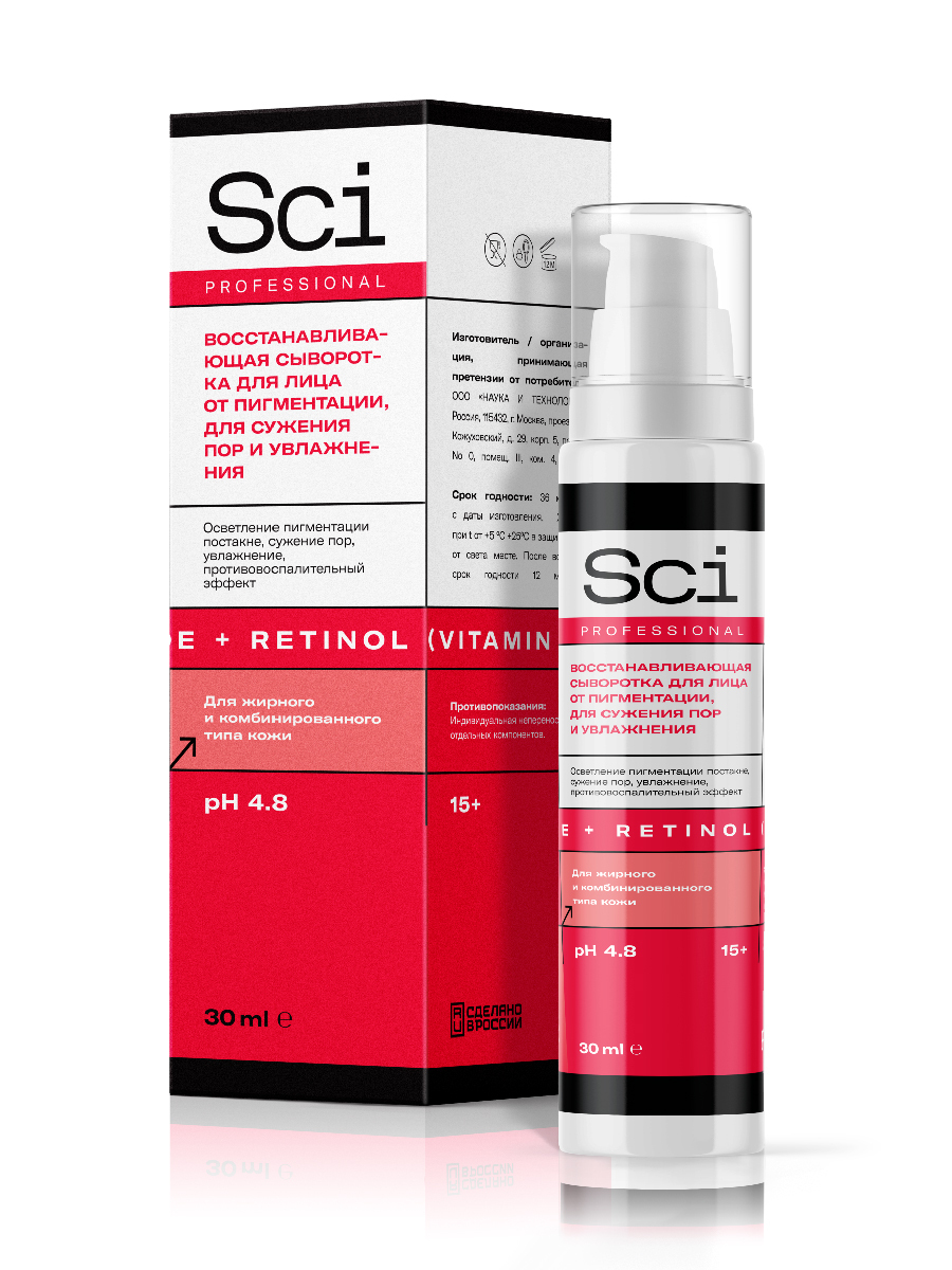 Ретинол замедляет старение (морщины), уменьшает поры, акне, пигментация отступает . Нормализует работу сальных желез, восстанавливает дерму