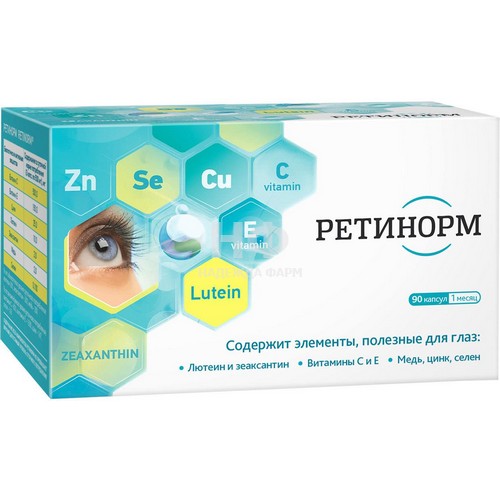 Биологически активные компоненты РЕТИНОРМ не синтезируются в организме человека, поэтому должны поступать извне с пищей . Входящие в состав РЕТИНОРМ лютеин, зеаксантин, витамины С, Е и микроэлементы способствуют нормализации обменных процессов в тканях глаза, снижают риск развития возрастных изменений в сетчатке . Лютеин и зеаксантин .