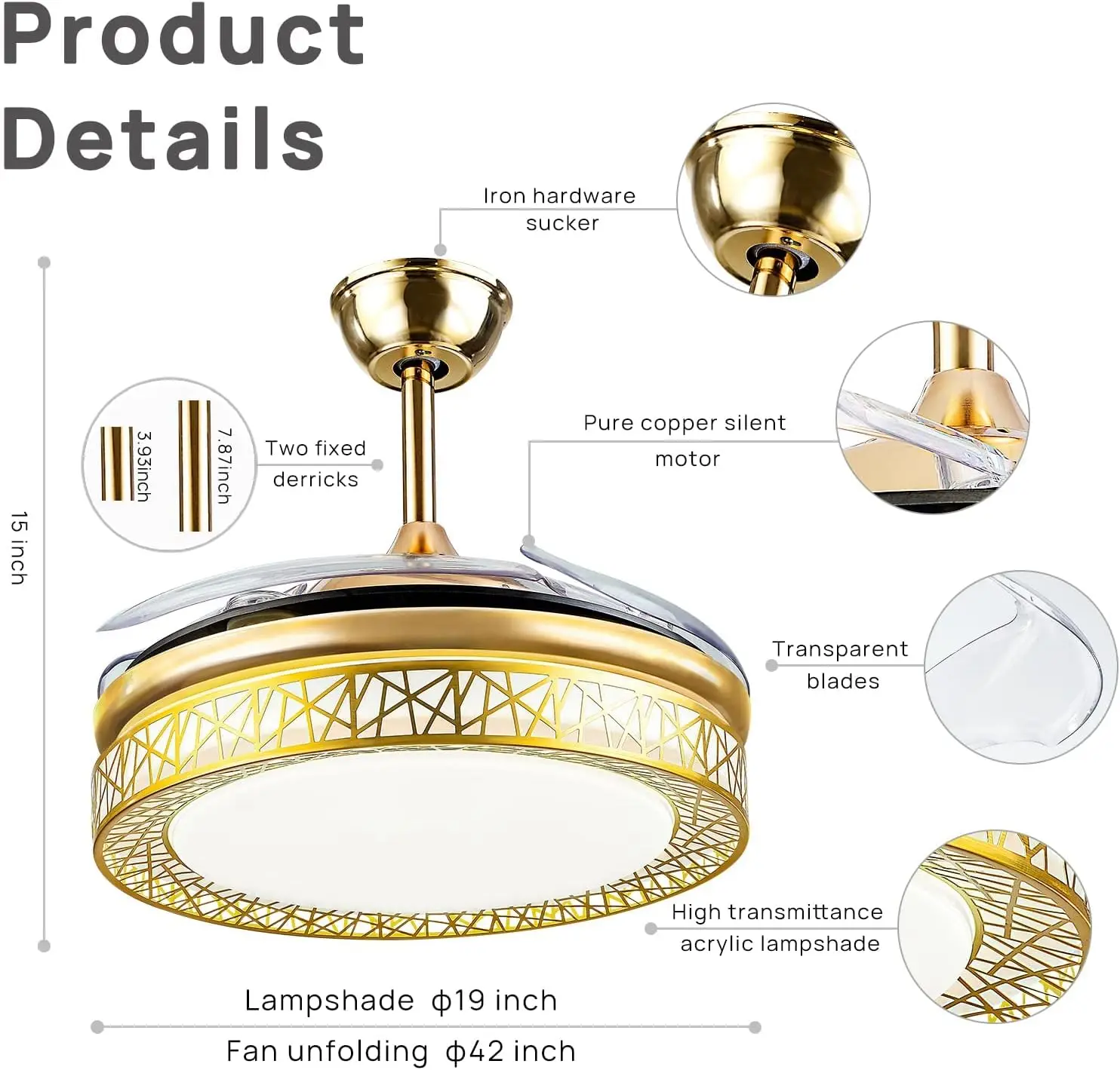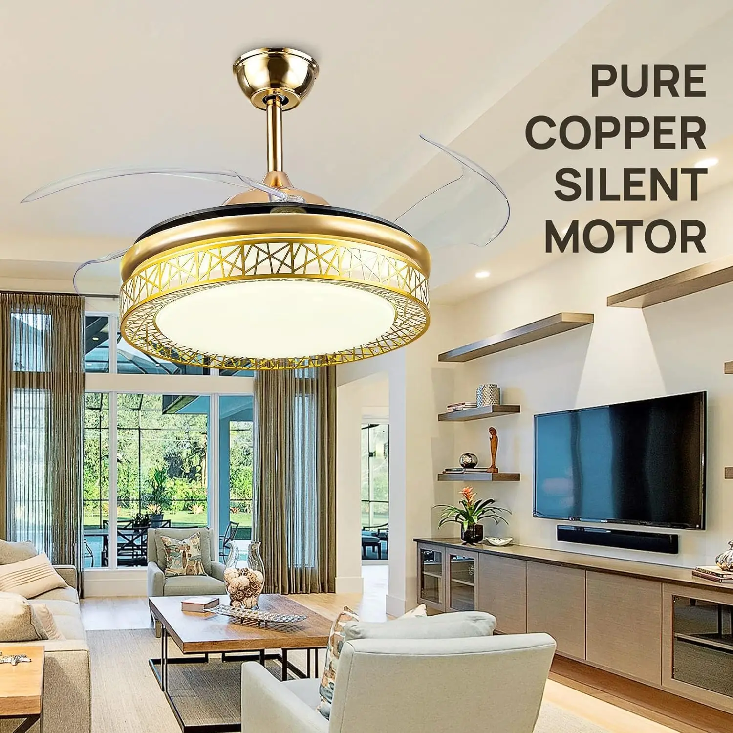 ICsycfUcGHere you can buy Retractable Ceiling Fan with LED Lights Remote Control,42 Inch Dimmable Chandelier Fandelier Bladeless Indoor Ceiling Fan for B with free delivery to your post office.