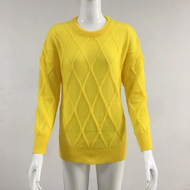 Woman Pullover 2021 Autumn and Winter Women Solid Color Classic Knitted Casual Temperament Straight Pullover Sweater Streetwear 10 07
