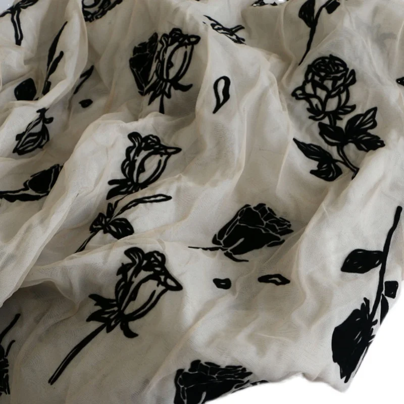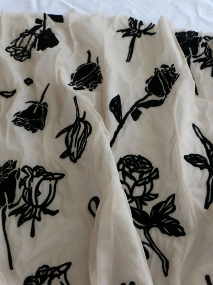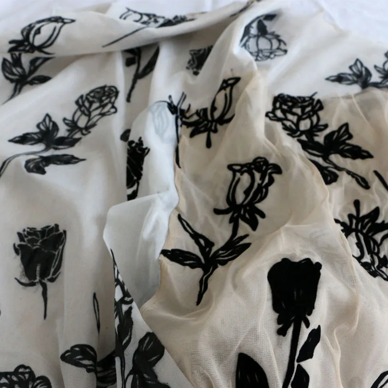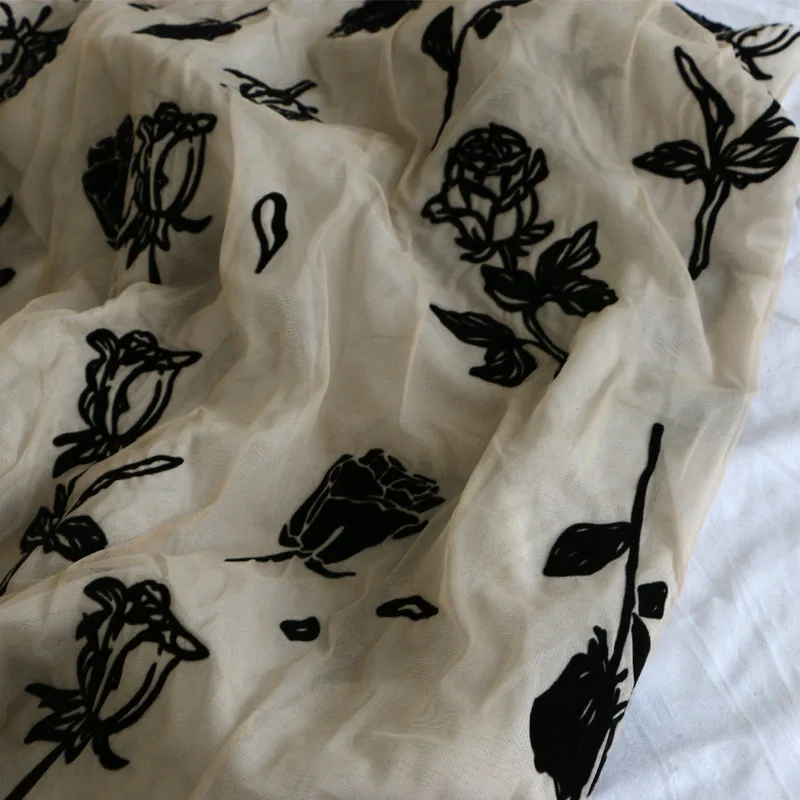«Retro Beige + White Double Layer Mesh Craft Feeling Black Rose Flocking Clothing Fabrics Cloth DIY» по лучшей цене на рынке! Всего за 26$ (2470рублей)