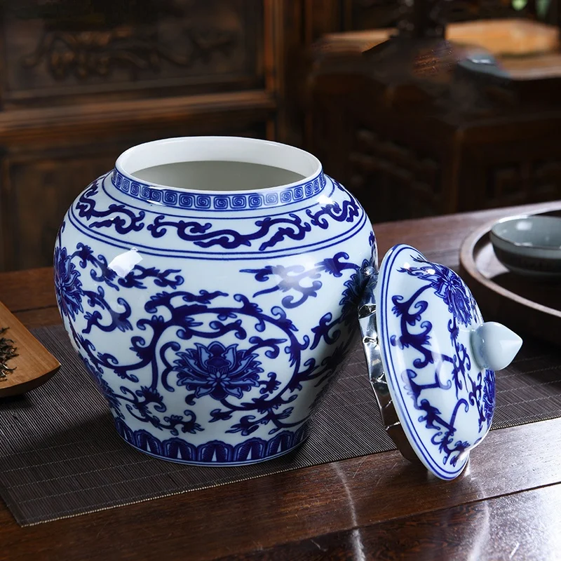 «Retro Ceramic Airtight Jar Blue and White Porcelain Tea Box Household Simple Underglaze Color Crafts Decorative Ornaments» по лучшей цене на рынке! Всего за 10$ (950рублей)