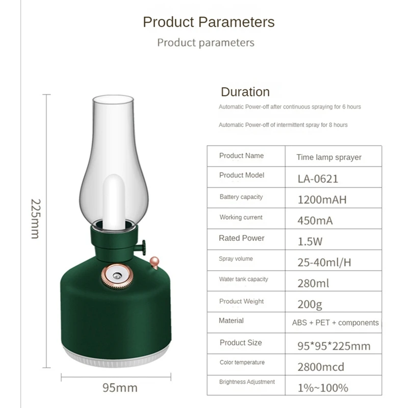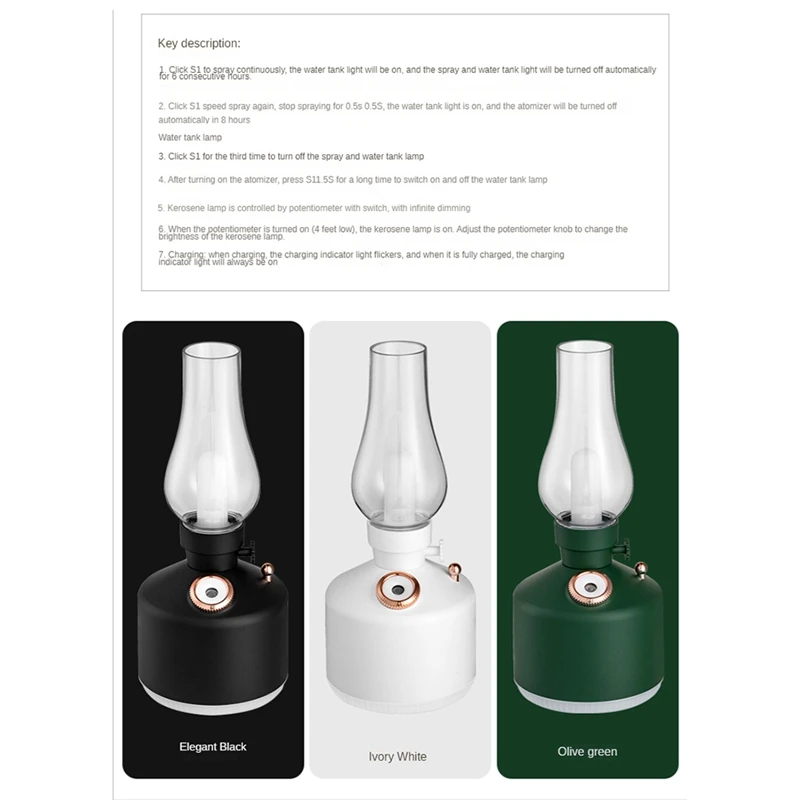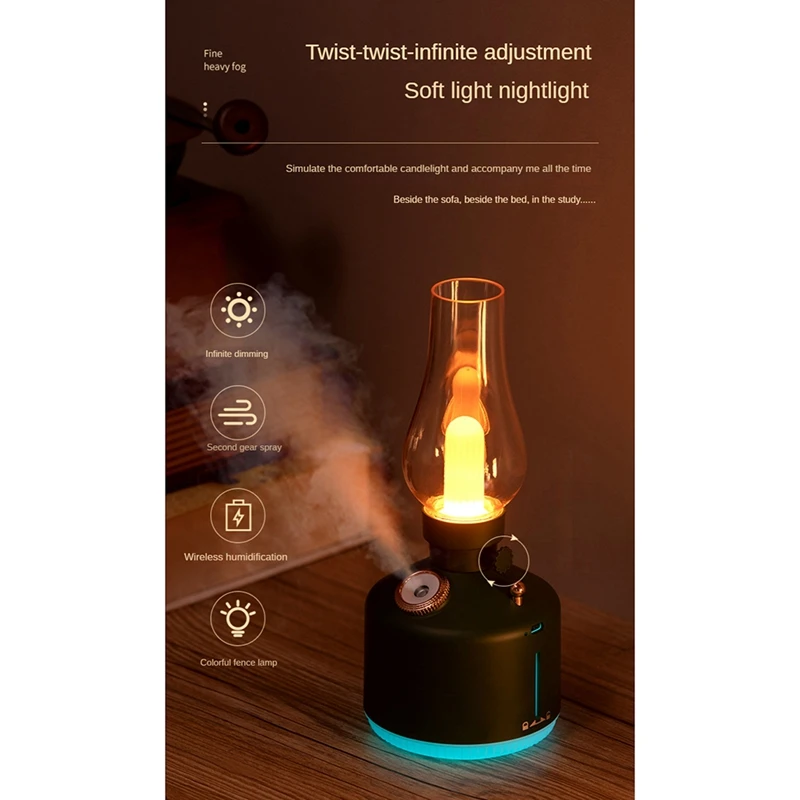TxqZqlUuHere you can buy Retro Coal Oil Lamp Model LED Night Light Mute Mist Maker USB Rechargeable Wireless Mini Air Humidifier For Car Office with free delivery to your post office.