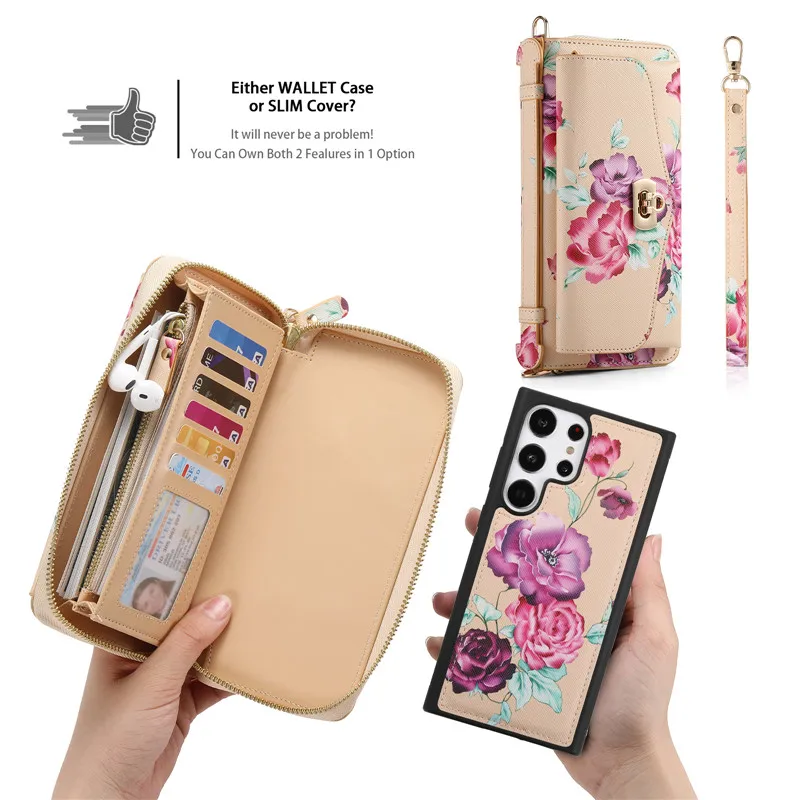 TPTpdfvXPiHere you can buy Retro Flower Multi-function Case For Samsung Galaxy S22 S23 Plus Note 20 Ultra Long Lanyard Zipper Leather Magnetic Wallet Cover with free delivery to your post office.
