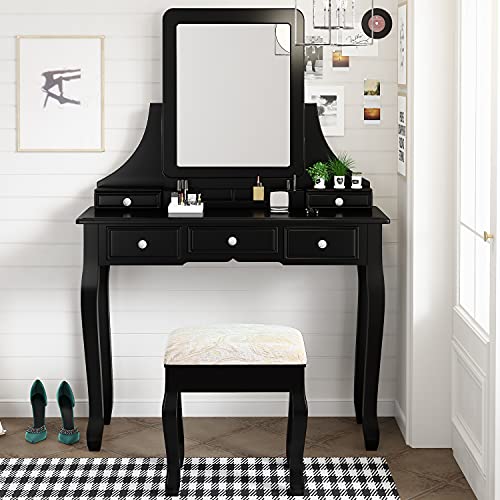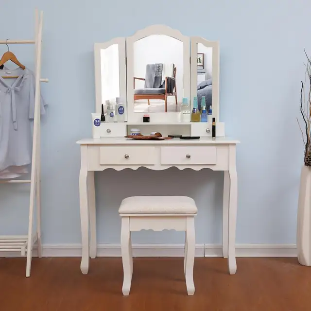 A large tri-folding mirror vanity table is convenient for you to view yourself from every angle, perfect your makeup and hair, and start your day with a gorgeous, flawless look . the dressing table integrates elegance and fashion style, perfect for your bedroom , bathroom, and hallways . the beautiful makeup vanity table set is also a great choice . . .