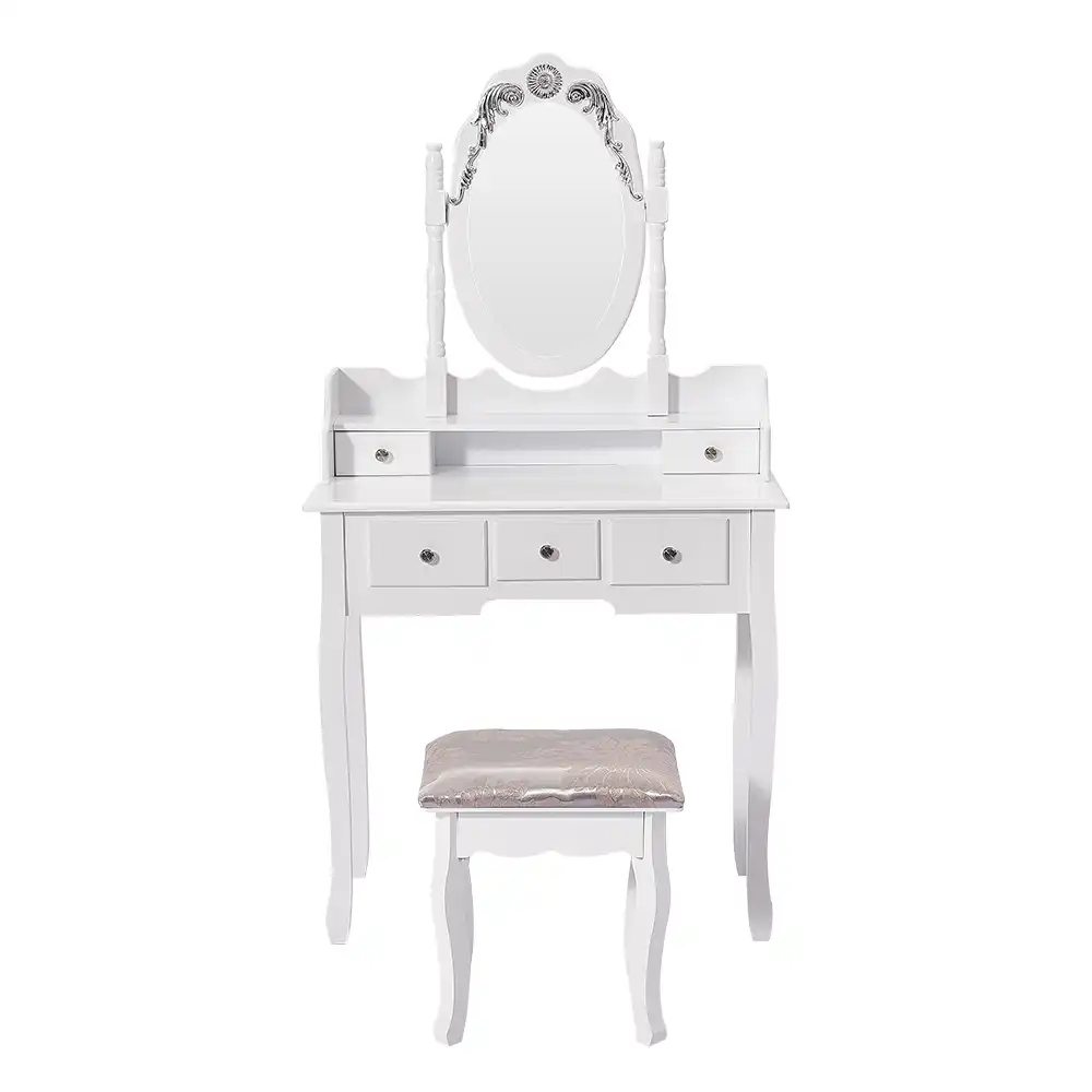 This makeup dressing table and stool set, with a beautiful and traditional style, is a perfect choice for any of you . Made of thick solid MDF, this vanity table set is sturdy and durable enough to serve you a long time . The dressing table has 3 drawers providing plenty of storage space .