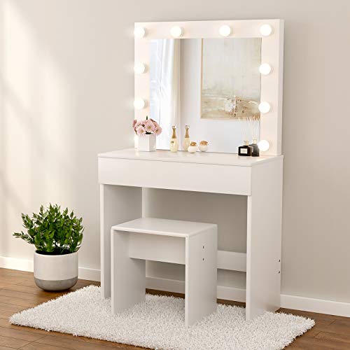 Dressing Table Vanity Makeup Table With Free Make-Up Organizer . by Wade Logan . $419 .99 . 35 . Rated 4 .5 out of 5 stars . 35 total votes . Free Shipping . With LED lighted mirror , easy to adjust light . Warm, natural and yellow 3 light modes, easy to switch the light mode according you needs .