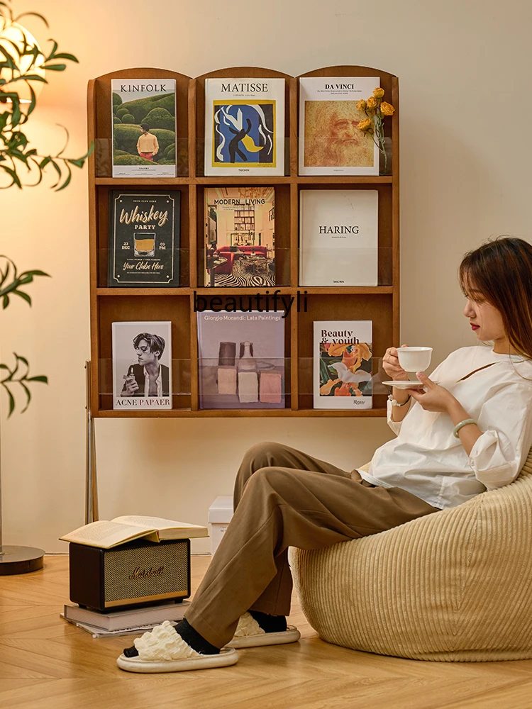 NmuIBKtfRHere you can buy Retro Solid Wood Magazine Rack Living Room Balcony Reading Display Rack French Newspaper Storage Rack Bookshelf with free delivery to your post office.