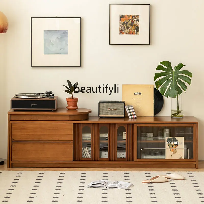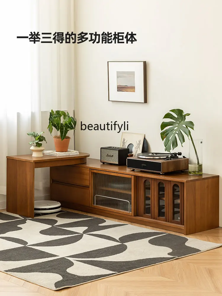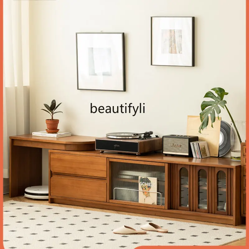 Retro Solid Wood TV Cabinet Simple Living Room Home Floor Combination Side Cabinet Multi-Function Retractable Locker - Купить с бесплатной доставкой