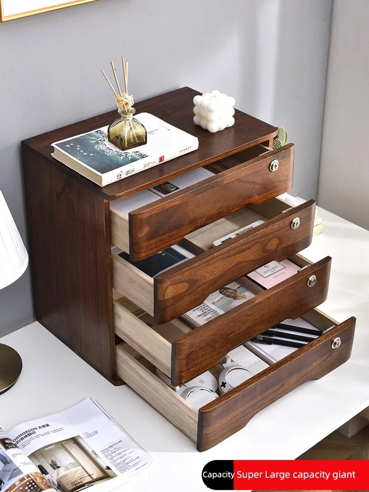 aihTcfdZYPHere you can buy Retro Style Solid Wood Desktop Storage Box Multi-layer Drawer Storage Cabinet with Lock, Office Debris File Organizer Boxes with free delivery to your post office.