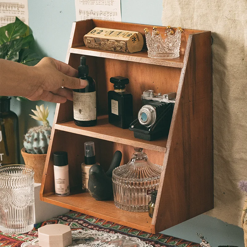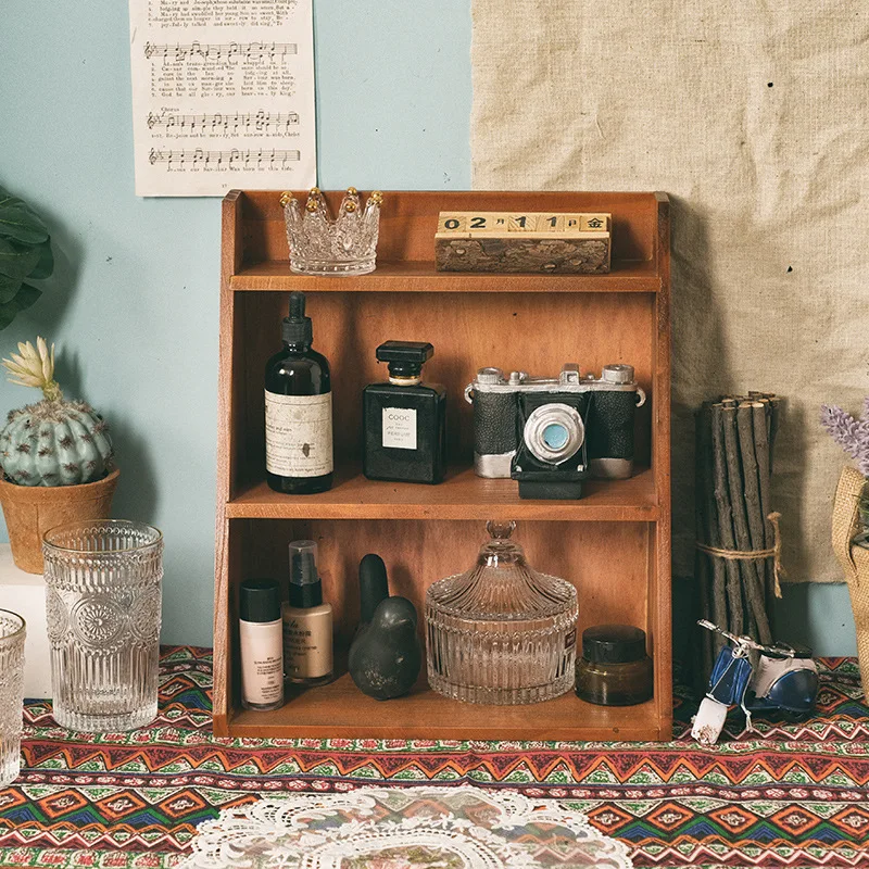 TFiWpvLEtHere you can buy Retro Wood Storage Rack Desktop Three-Layer Shelving Magazine Books Storage Cabinet Metal Hooks Can Be Hung Storage Rack with free delivery to your post office.