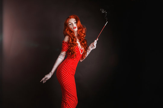 Beautiful Redhead Woman Smoking Cigarette Stock Photos and . . .
