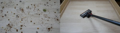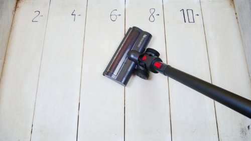 But the suction power is quite good. This vacuum cleaner was able to suck out debris well from slots up to 8 mm deep and even practically coped with the 10 mm mark. This is enough for living conditions and maintaining cleanliness in the house.