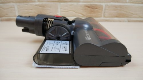 The nozzle for cleaning mattresses and upholstered furniture is equipped with a bristly turbo brush, which can be removed by turning the lock on the side. The workmanship is quite budgetary.