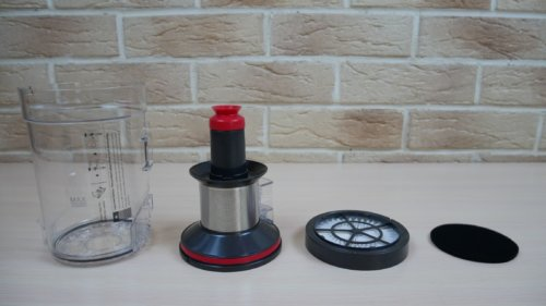 The trash can is also easily removable for cleaning and maintenance. A filtration system based on HEPA and a foam filter, as well as a cyclone is installed inside the flask. The dust container itself holds up to 600 ml of dry waste.