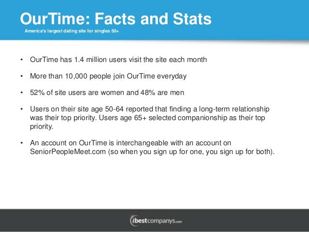 Dedicated to the over-50 crowd, OurTime is a dating service for seniors who are single and ready to mingle . Looking for love in your 50s, 60s, or 70s (and beyond!) is different than dating in your 20s or 30s - and this site caters to those differences . Our Time offers a straightforward dating experience with no frills and no fuss .