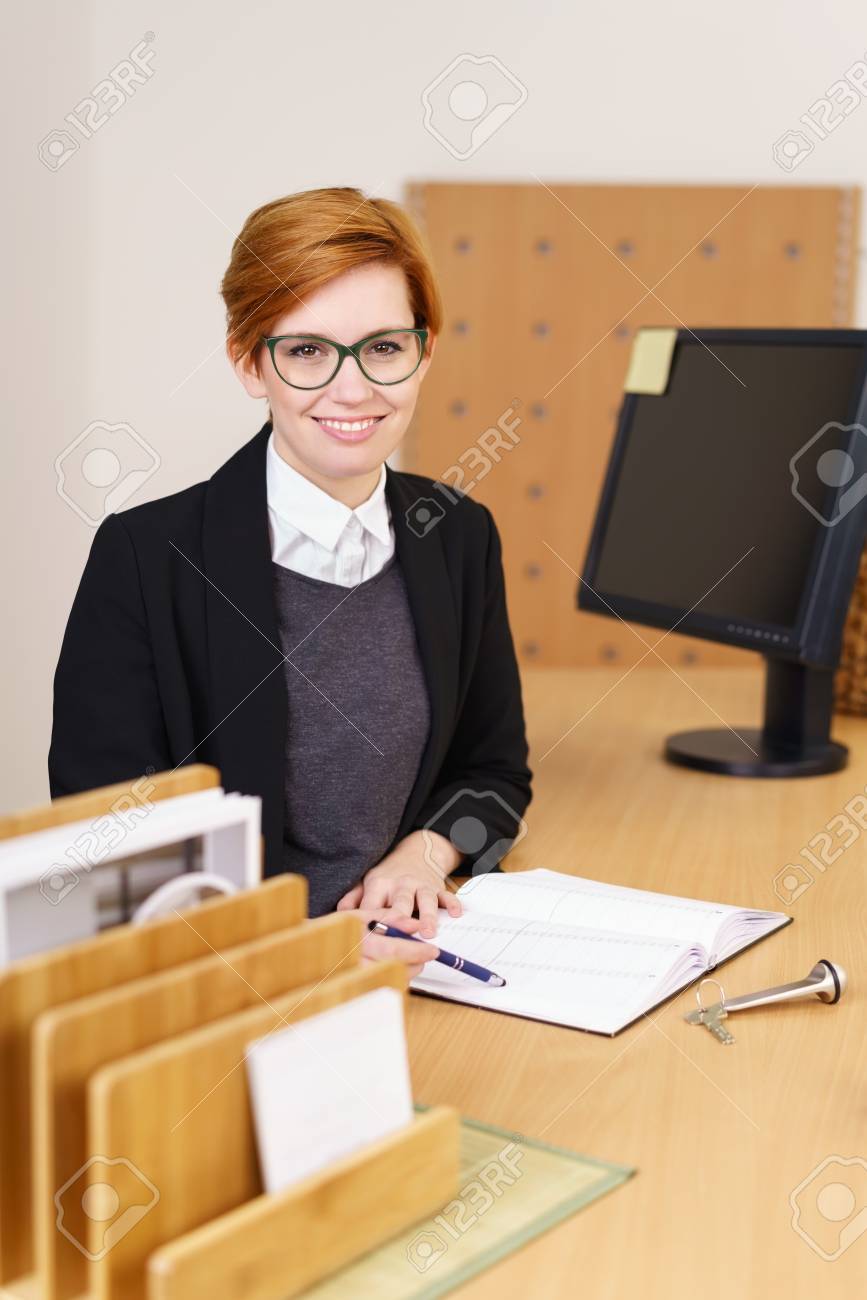 Rezeptionistin mit Brille