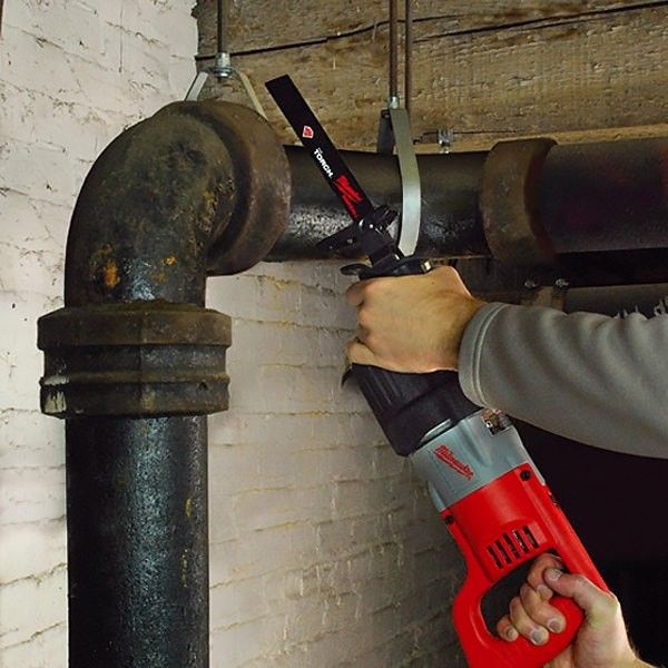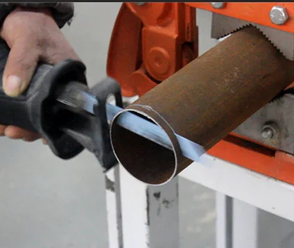 Резка трубы сабельной пилой