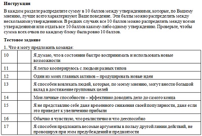 Результат теста белбина 109 фото