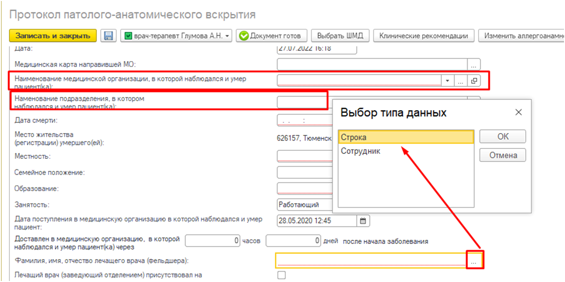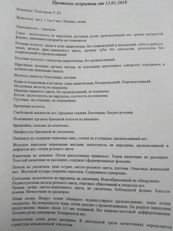 Результат вскрытия умершего