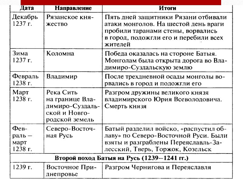 Результаты 2 похода батыя
