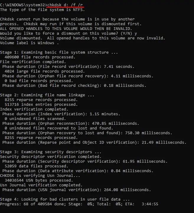 Результаты chkdsk
