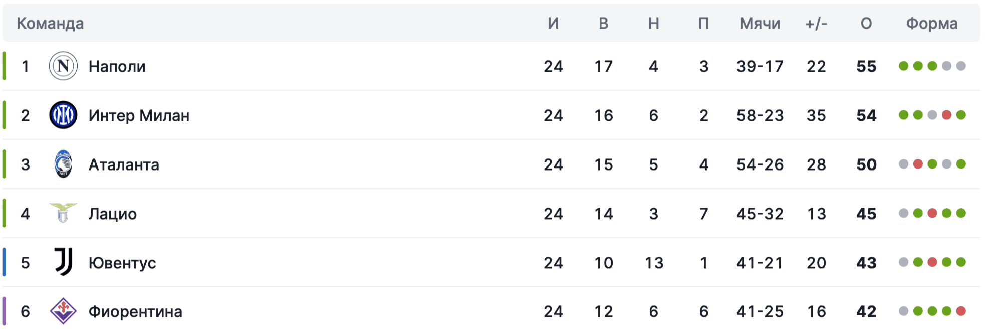 Результаты матчей наполи