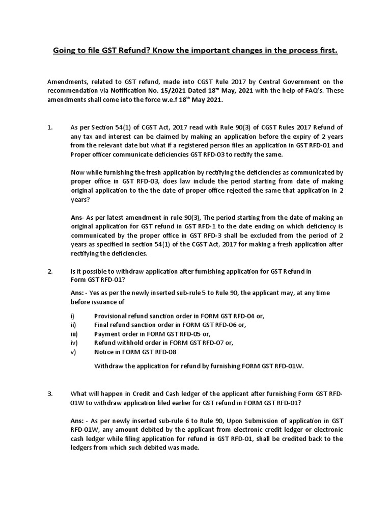 Changes in GST Refund Procedures and Rules