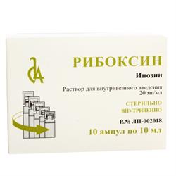 Рибоксин (раствор для внутривенного введения, 20 мг/мл), инструкция по медицинскому применению РУ № Р n000802/01 Дата последнего изменения: 07 .09 .2020