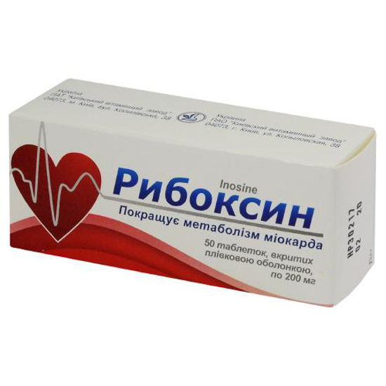 Рибоксин, 50 шт ., 200 мг, таблетки, покрытые оболочкой в 956 аптеках, найти аптеку Цена в Москве от 43 руб . Купить Действующее вещество (МНН) Инозин Дозировка или размер 200 мг Форма выпуска таблетки, покрытые оболочкой Первичная упаковка блистер Производитель Борисовский завод медицинских препаратов Страна Беларусь