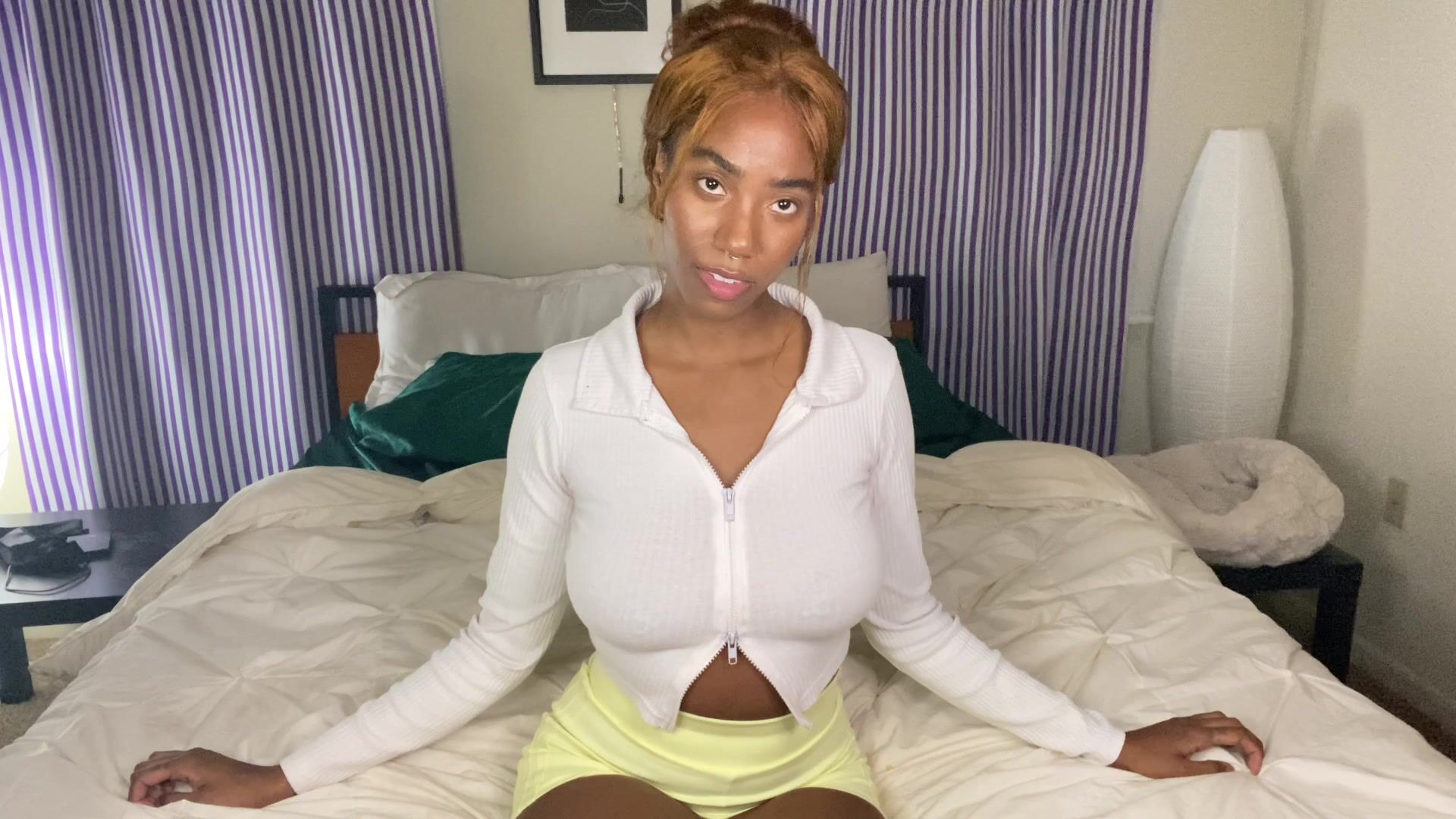Dark Brown Legal Age Teenager Wildly Fingers Her Bald Twat On The Bed