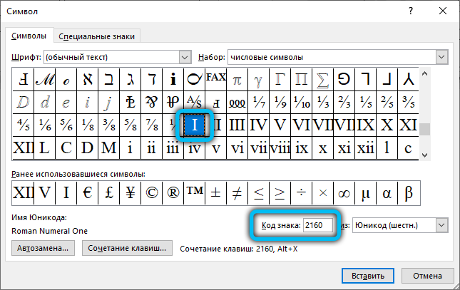 Римская цифра 1 как набрать на клавиатуре