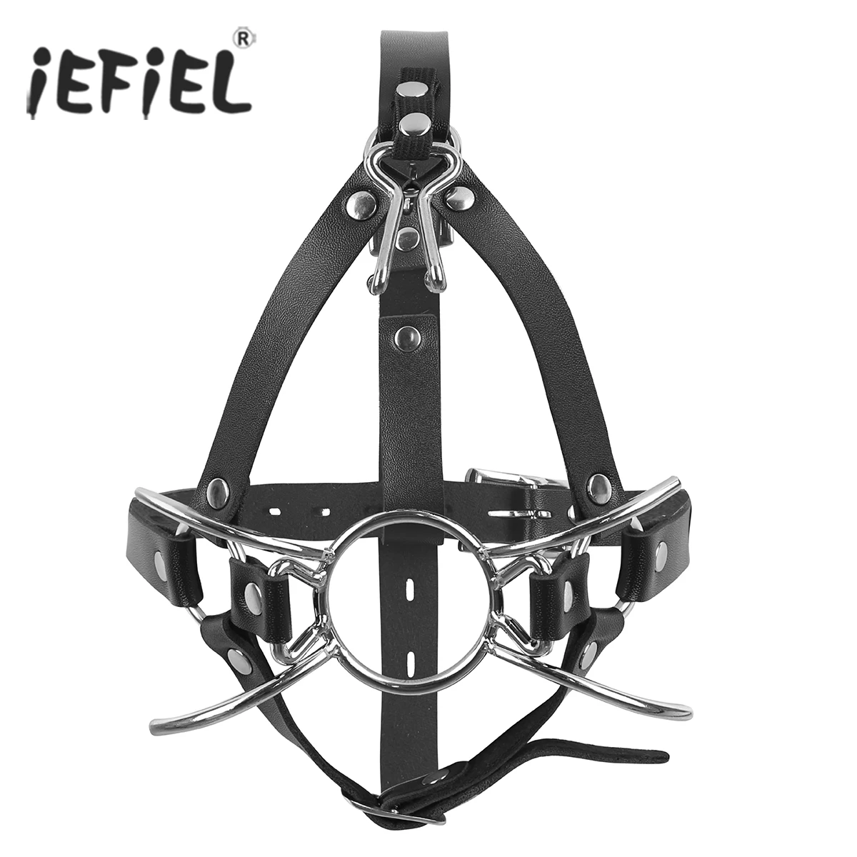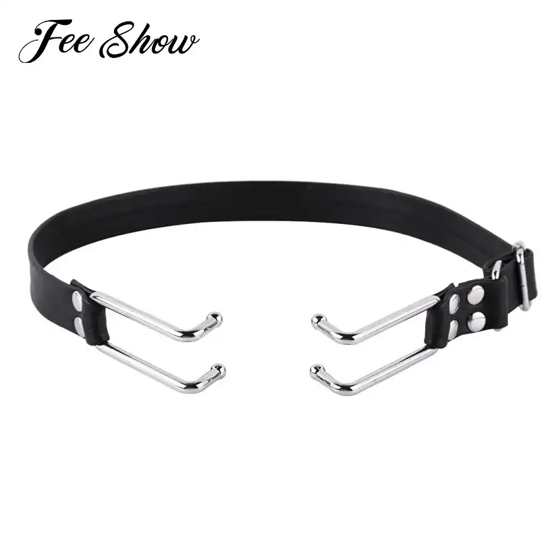 Slave Harness Double Ring Metal Mouthl Gag Plug Oral Restraint Toy