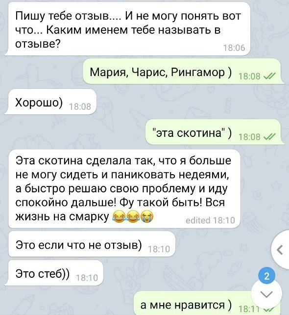 Charis (иногда Ringamor)Я очень и очень ленив. Весьма. Потому я крайне редко дёргаю своих клиентов просьбами о публичных отзывах. Мне хватает того, что у них жизнь постепенно становится лучше.