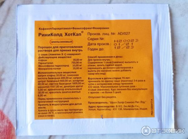 РиниКолд ХотКап порошок — инструкция по применению | справочник . . .