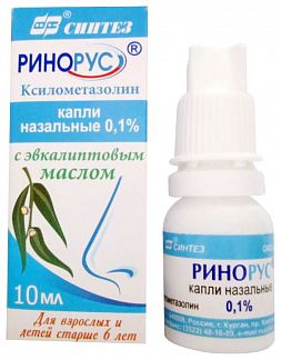 РИНОРУС, капли Купить от 20 Р Действующее вещество - ксилометазолина гидрохлорид (xylometazoline) Состав и форма выпуска препарата Капли назальные 0 .1% прозрачные, бесцветные или слегка окрашенные . 10 мл - флаконы с крышкой-капельницей (1) - пачки картонные . Фармакологическое действие