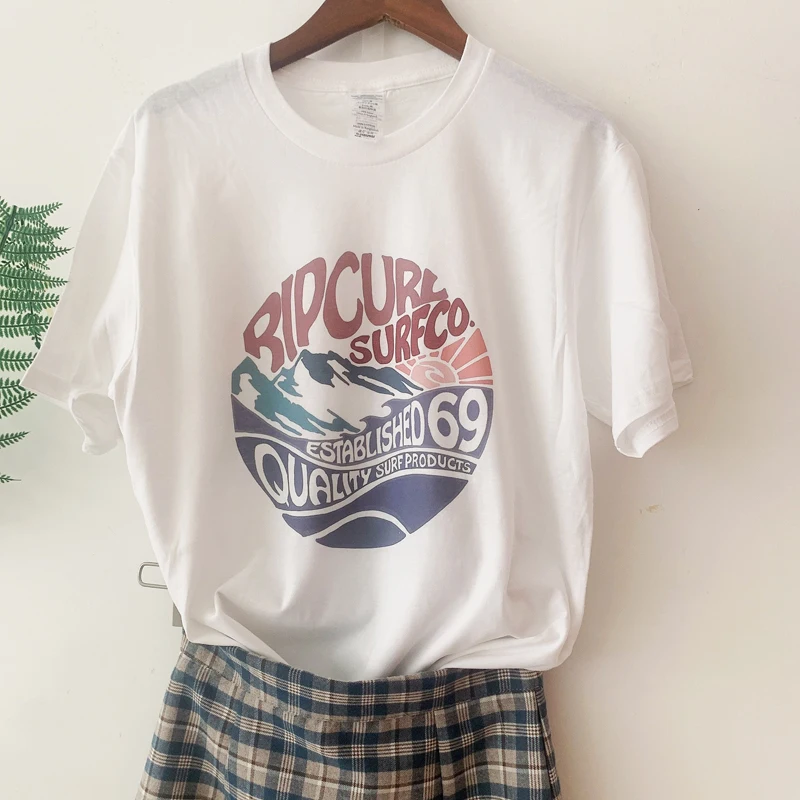 «Ripcurl Surf Print Graphic Women T shirts White Loose Short Sleeve Tops Tees Crewneck Tumblr Fashion Harajuku Casual Shirts» по лучшей цене на рынке! Всего за 8$ (760рублей)