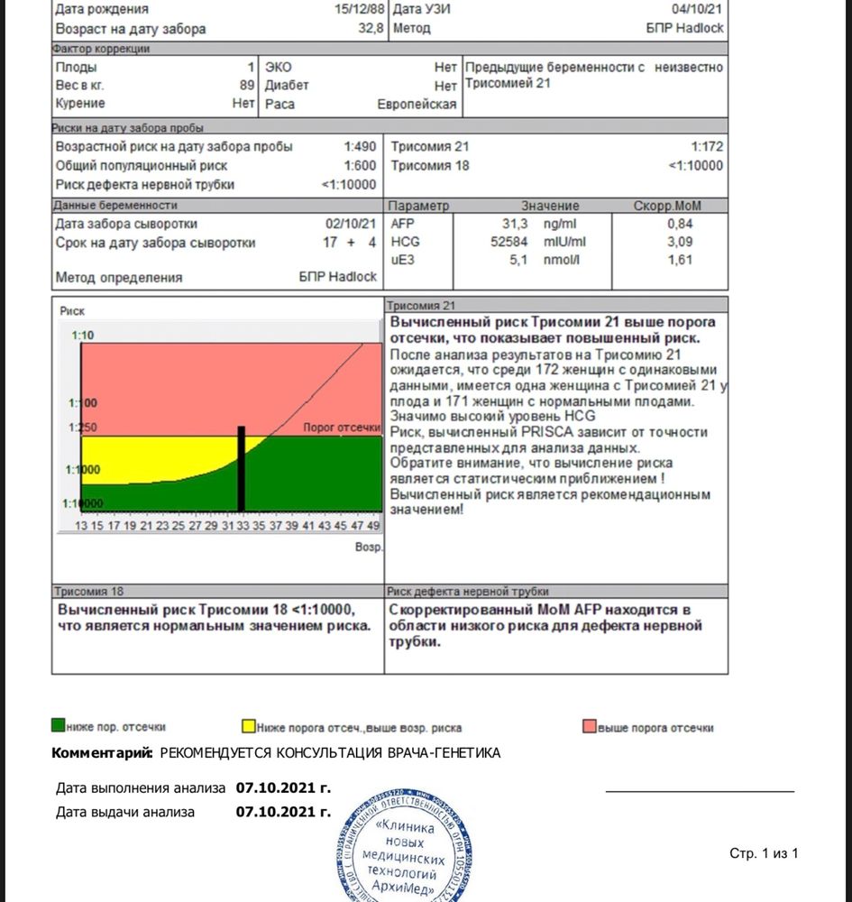 Риск по трисомии 1 21 180 фото